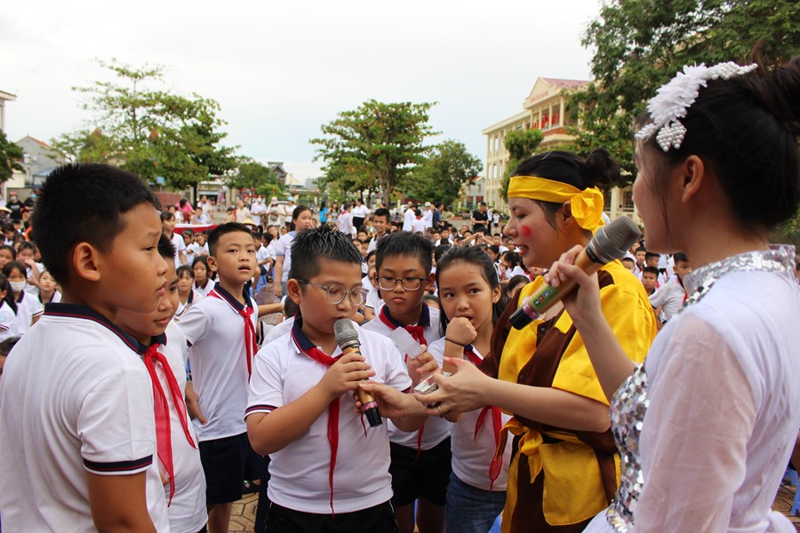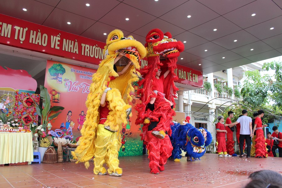 Tham gia chương trình, các em thiếu nhi đã được hoà mình vào không khí vui tươi, phấn khởi của Tết Trung thu với nhiều hoạt động sôi nổi như: giao lưu văn nghệ đặc sắc, chơi trò chơi, giải câu đố, thi múa lân của 5 khối lớp và phá cỗ Trung thu.